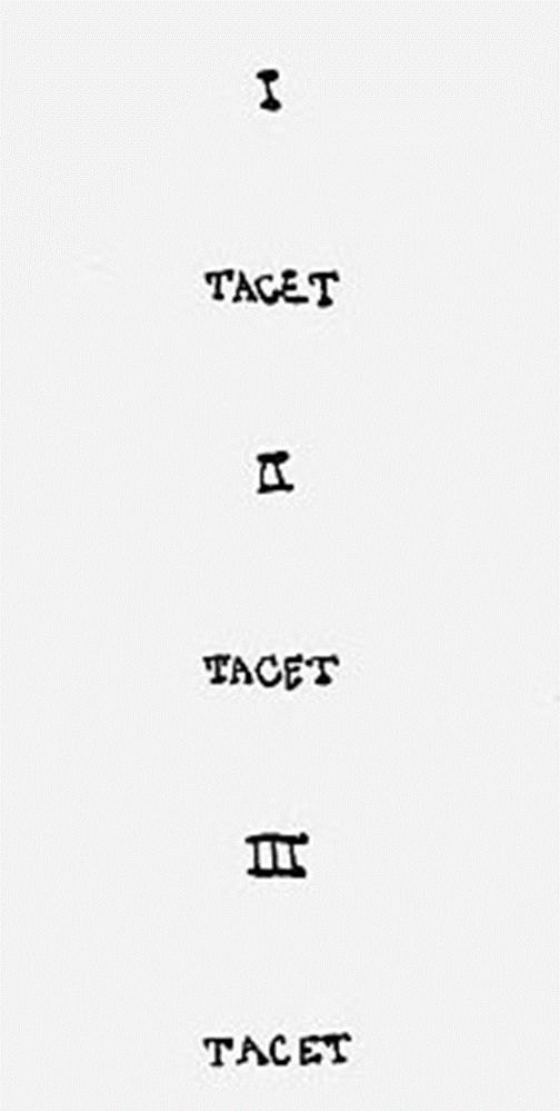 ジョン・ケージの「四分三十三秒」は、「第一楽章 TACET」「第二楽章 TACET」「第三楽章 TACET」と指示されています。